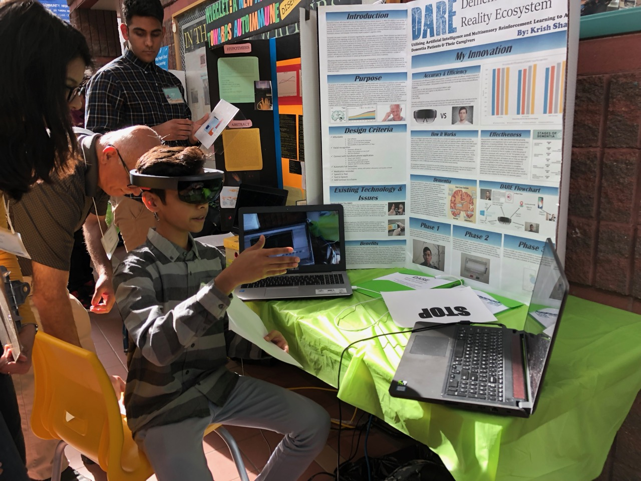 After witnessing the unbearable stress that bounds itself to the shoulders of dementia caretakers, I decided to build a system that would aid in taking care of dementia patients. I used the Microsoft HoloLens as a prototype of demonstrating the main features of DARE. Firstly, dare would assist in the recognition of faces and names of a dementia patient. Secondly, it also included a text to speech translator for those who are unable to read. Thirdly, it included reminders for the patient to take their medication . Lastly, it included an AR navigation system that would send the patient’s location to the caretaker, as well as tell the patient how to get to their desired destination. I also utilized something called multisensory reinforcement learning (similar to reinforcement learning in ML), where the HoloLens would vibrate, make sounds, and show holograms to reinforce positive habits in the dementia patient.