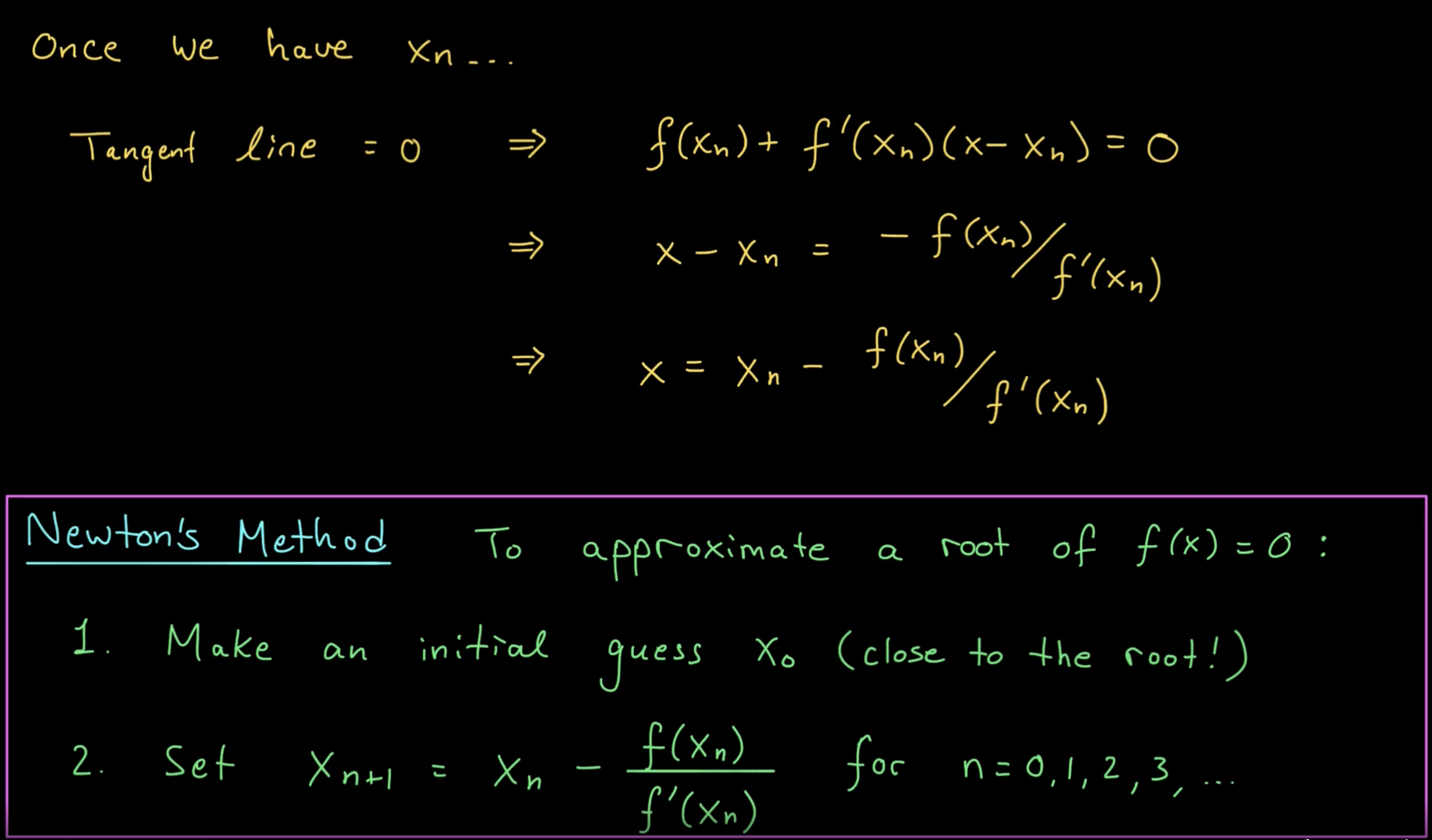 calculus method developed by Sir Isaac Newton for approxiamating the roots of functions using their tangent lines.